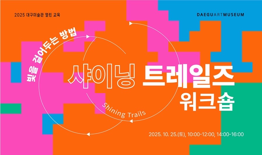 샤이닝 트레일즈(Shining Trails)는 빛이 남기는 흔적이자 ‘우리가 함께 걸어가는 길’을 상징합니다. 이번 워크숍을 통해 정득용 작가, 안지언 퍼실리테이터와 함께 미술관 야외 공간을 거닐며 자연과 빛을 주제로 짧은 산책과 대화를 나누고, 그 경험을 예술적 언어로 확장해 나가는 시간을 가졌습니다. 단순한 작품 감상을 넘어 개인의 체험이 예술로 전환되는 과정을 직접 경험해보고 공동 설치작업을 통해 서로의 이야기를 나누고 연결하며, 소통과 협력속에서 새로운 예술적 가능성을 발견. 깊어가는 가을, 자연과 빛이 열어주는 길 위에서 펼쳐진 특별한 여정을 소개합니다.